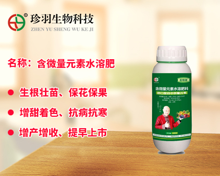 大量元素水溶肥料為經(jīng)水溶解或稀釋,用于灌溉施肥、葉面施肥、無土栽培、浸種蘸根等用途的液體或固體產(chǎn)品,可以葉面施肥、浸種蘸根、灌溉施肥,灌溉包括噴灌、滴灌等方式進行灌溉時施肥,既節(jié)約用水,又節(jié)約施肥,而且還植物吸收快,大量元素水溶肥是一種可以完全溶于水的多元復合肥料,它能迅速地溶解于水中,更容易被作物吸收,而且其吸收利用率相對較高,我們看一下珍羽生物的大量水溶肥。